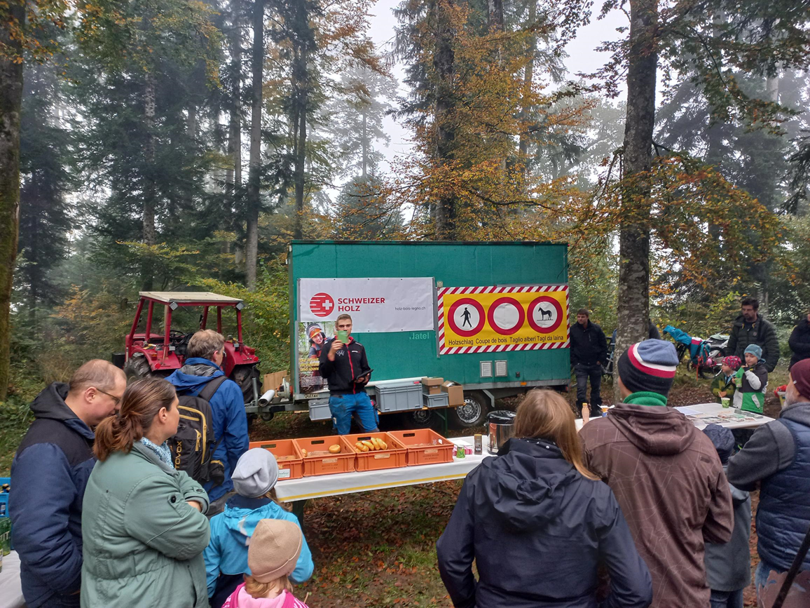 Viele Fröhliche, teils noch verschlafene Gesichter, durften wir am Morgen des 19.Oktobers beim Brätliplatz Eichelspitz empfangen. Die Erwachsenen konnten sich sofort mit Kaffe und Gipfeli stärken …